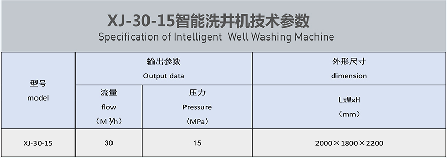 XJ-30-15智能洗井机就是为石油开发注水洗井作业量身打造的成套设备,其集液压系统、电器、计算机控制与一体,大大提高了控制精度和洗井效率,改善了洗井的工作环境,提高了操作的安全性。